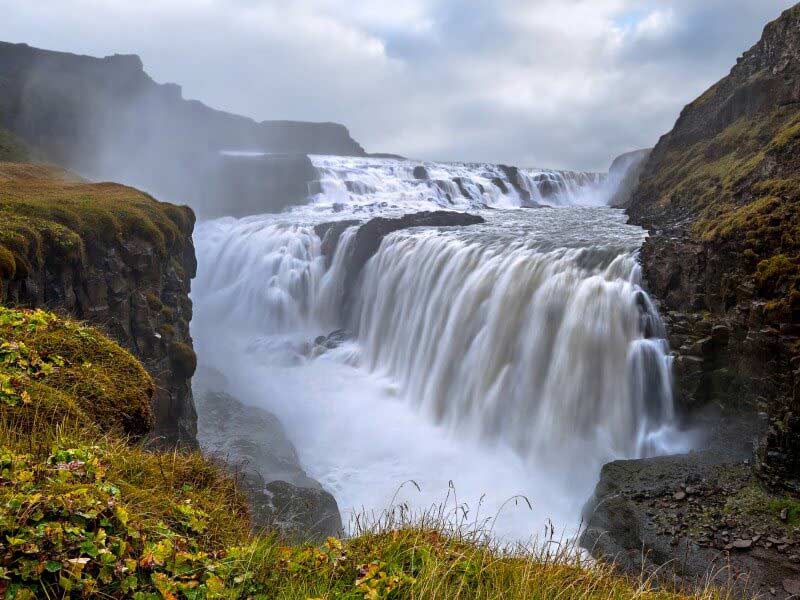 Tretje oglišče zlatega trikotnika, najslavnejši islandski slap Gullfoss. Tuji investitorji so zaradi izgradnje hidroelektrarne želeli zajeziti reko. Lastnik jim zemlje ni želel prodati, zato so pridobili dovoljenje direktno od islandske vlade. Lastnikova hčer je odšla v Reykjavik protestirat. Zagrozila je, da se bo vrgla v slap, če bodo nadaljevali s projektom. S svojo grožnjo je uspela in investitor je od namere odstopil. Danes voda slapa v sekundi napolni šestdeset transportnih kontejnerjev in doseže največji pretok dva tisoč kubičnih metrov na sekundo. Moč jo dobesedno dviguje v zrak, tako da se nad njim stalno dviguje meglica vode.